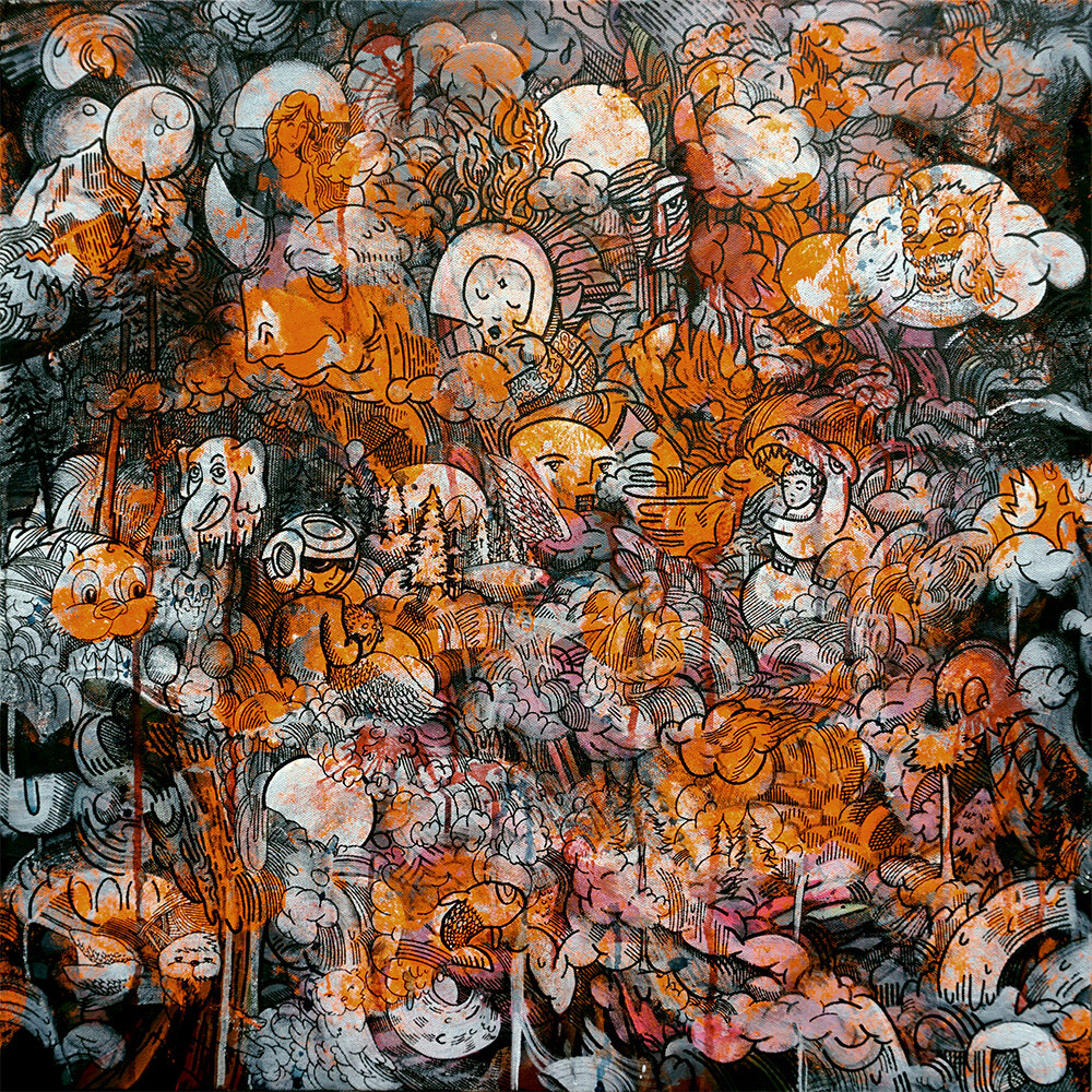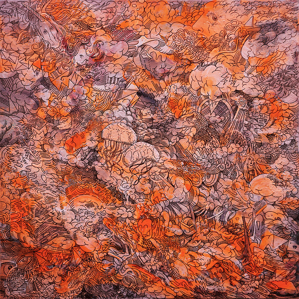 24x24" acrylic, watercolor and archival ink marker on canvas