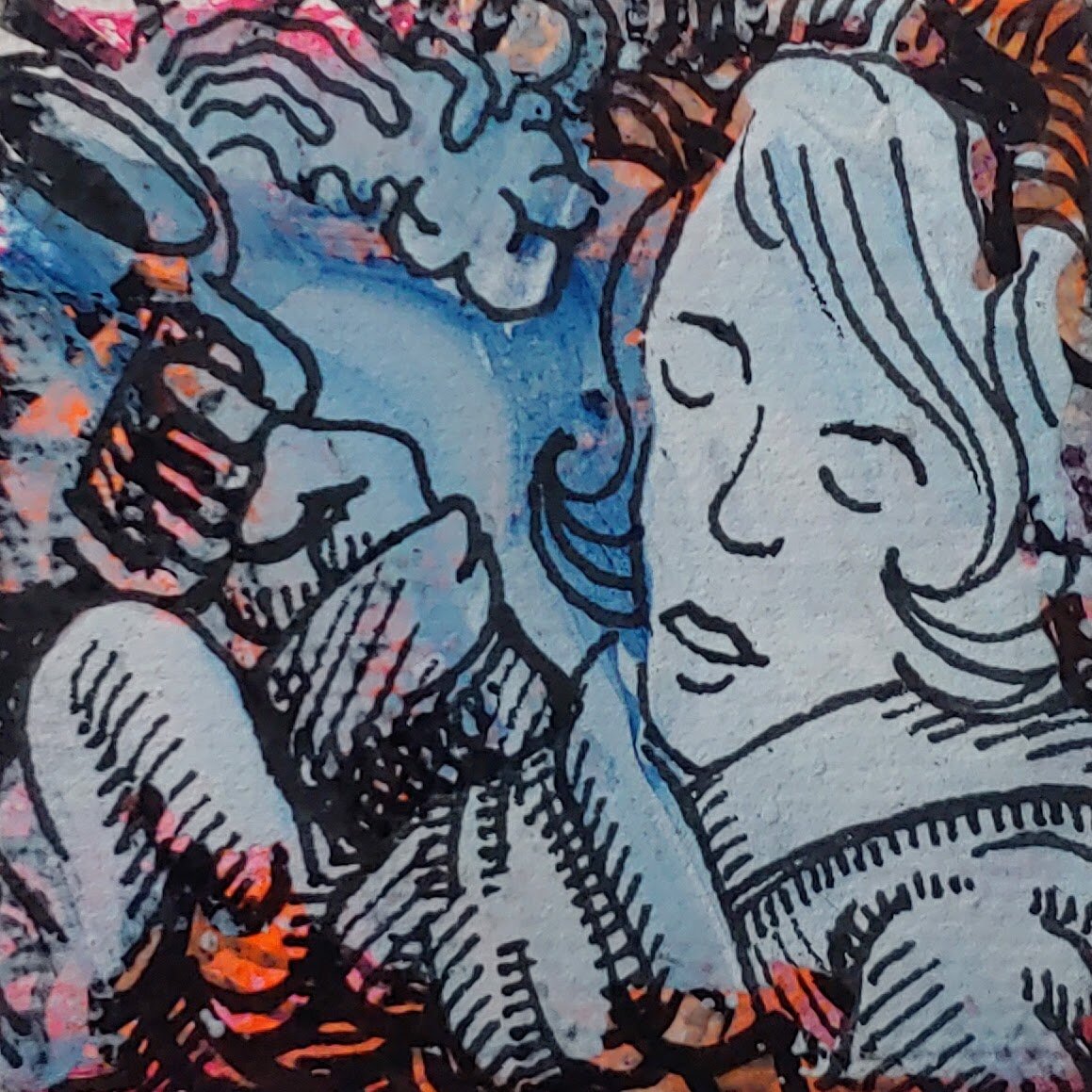 Small original paintings at great collectable prices! Most of these paintings are very much 3D and come with a pair of Chromadepth 3D glasses. These paintings are where I explore different styles and techniques that will then be implemented in larger paintings. Many of these themes play with various iconography, pop surrealism and lots of line work. Enjoy! If you have any questions about discounts when purchasing 3 or more paintings, email me any time. I’ll be posting new little originals on here often, so there will always be new pieces to add to your collection!